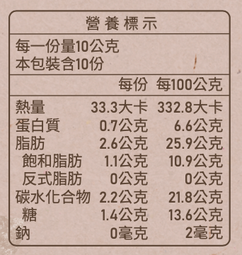 口感酥脆扎實,越嚼越香,散發淡淡腰果香,帶濃郁的可可味!